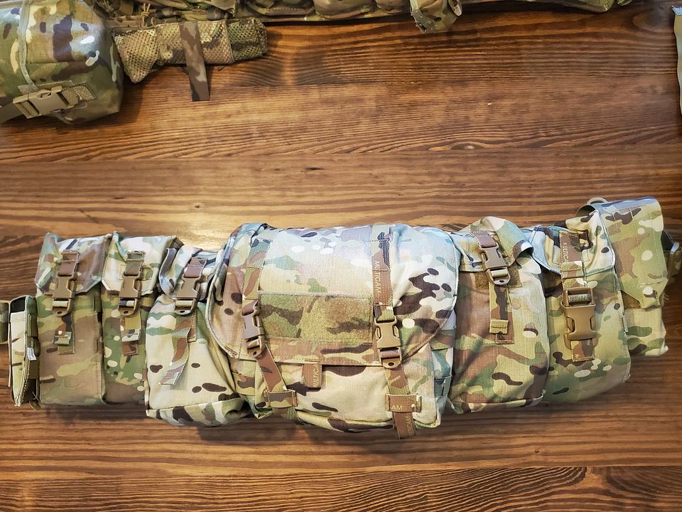 Originally Posted By cap6888: Thanks for the info Lew. For adding a poncho liner, what about a “bum roll” pouch? Or for that matter, this might be a good way to incorporate a Molle Waist pack. If it just held a woobie, it might compress enough between a pack and the utility pouch shelf to be comfortable. Or since it isn’t really a lot of weight, maybe extend the belt and wrap it around the outer edge of the utility pouches. Although it would make your ass end bigger. Just thinking out loud here. You can actually cram two poncho liners in the MOLLE waist pack, I got one hanging from the MOLLE medium ruck we picked up earlier in the year. The MOLLE waist pack is actually pretty freaking giant. If you're running a butt pack, you can just roll up the poncho liner and slide it under the lid top straps. If you don't have a butt pack, it might be the perfect fit for a little extra 1" webbing and a couple fastex buckles. You could lash it to the belt, pouches, or even the yoke straps or suspenders. |